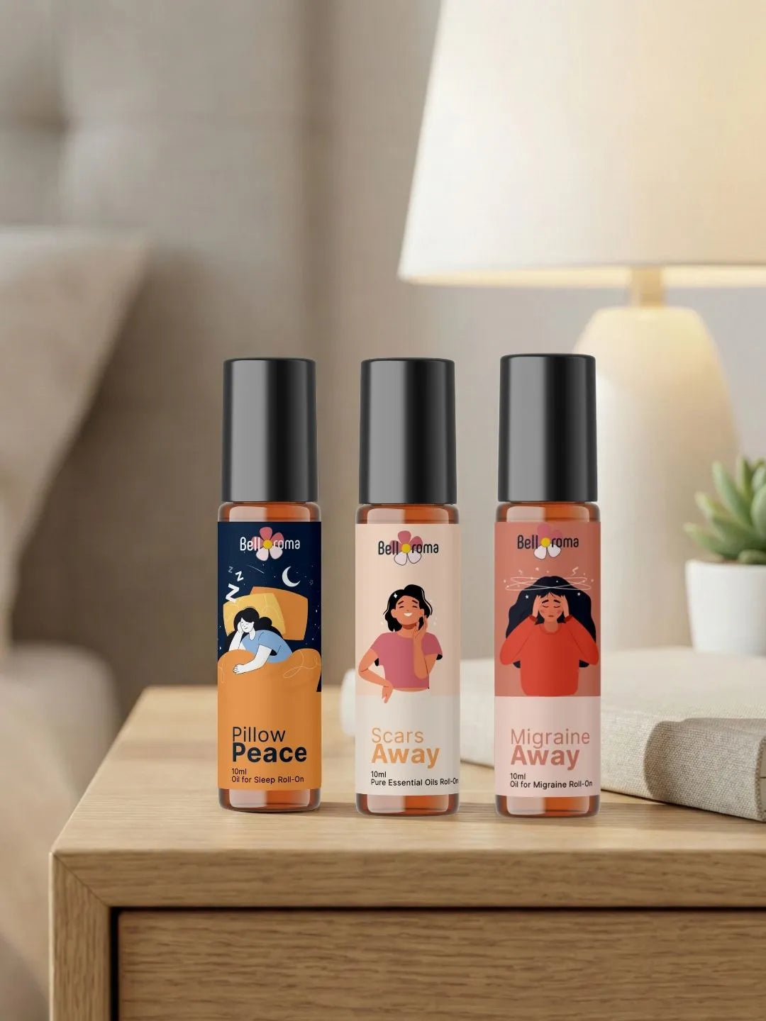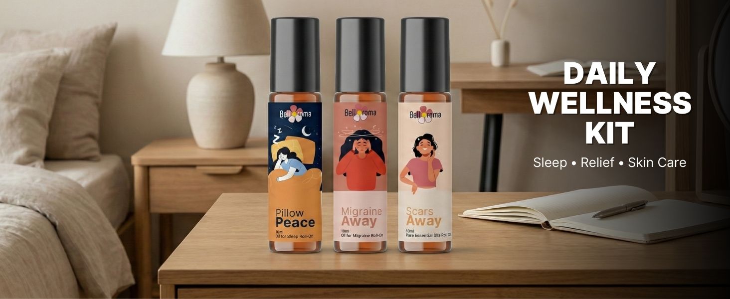 The Daily Wellness Trio is designed for complete daily self-care — helping you sleep better at night, manage migraine and headache discomfort, and support scar care over time. This thoughtfully curated roll-on kit fits easily into your home and office routine, offering natural aromatherapy-based wellness for everyday life.