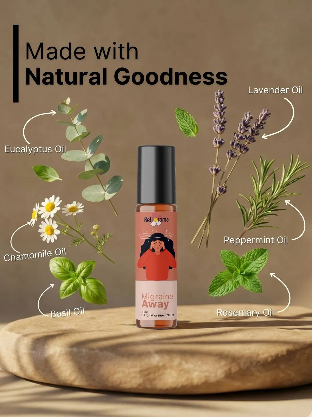 - Natural Migraine Relief Oil: Belloroma Migraine Away Roll On is formulated with 100% natural essential oils like eucalyptus, lavender, rosemary, and peppermint for effective headache relief