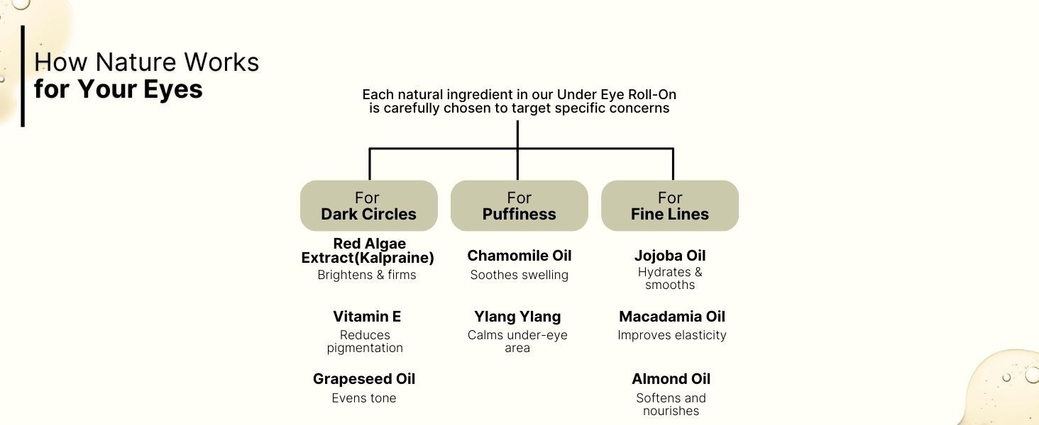 Tired, puffy eyes making you look dull? Say hello to our Under Eye Care Roll On, a natural blend designed to refresh, hydrate, and reduce dark circles. This roll-on helps you achieve a youthful, well-rested look.